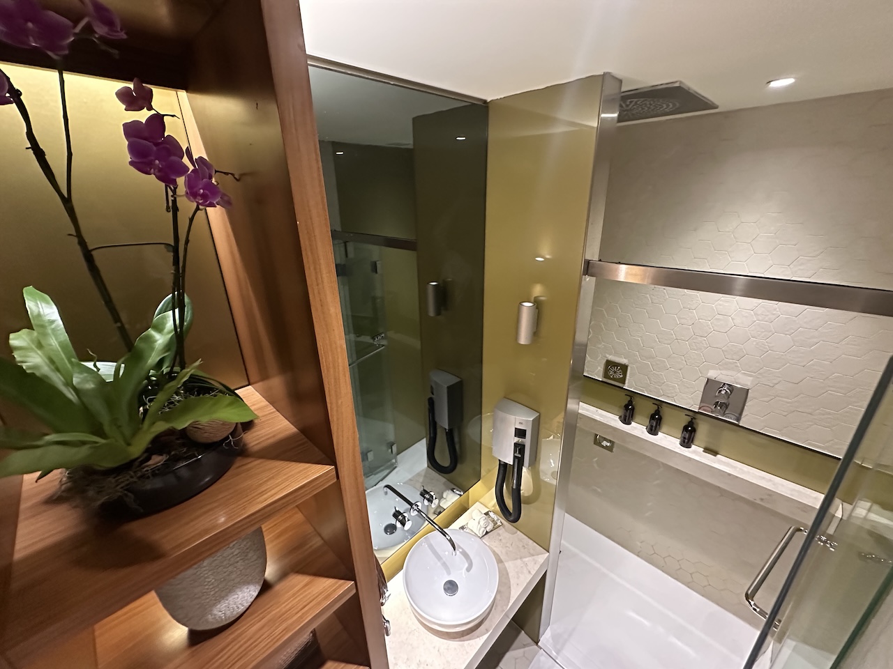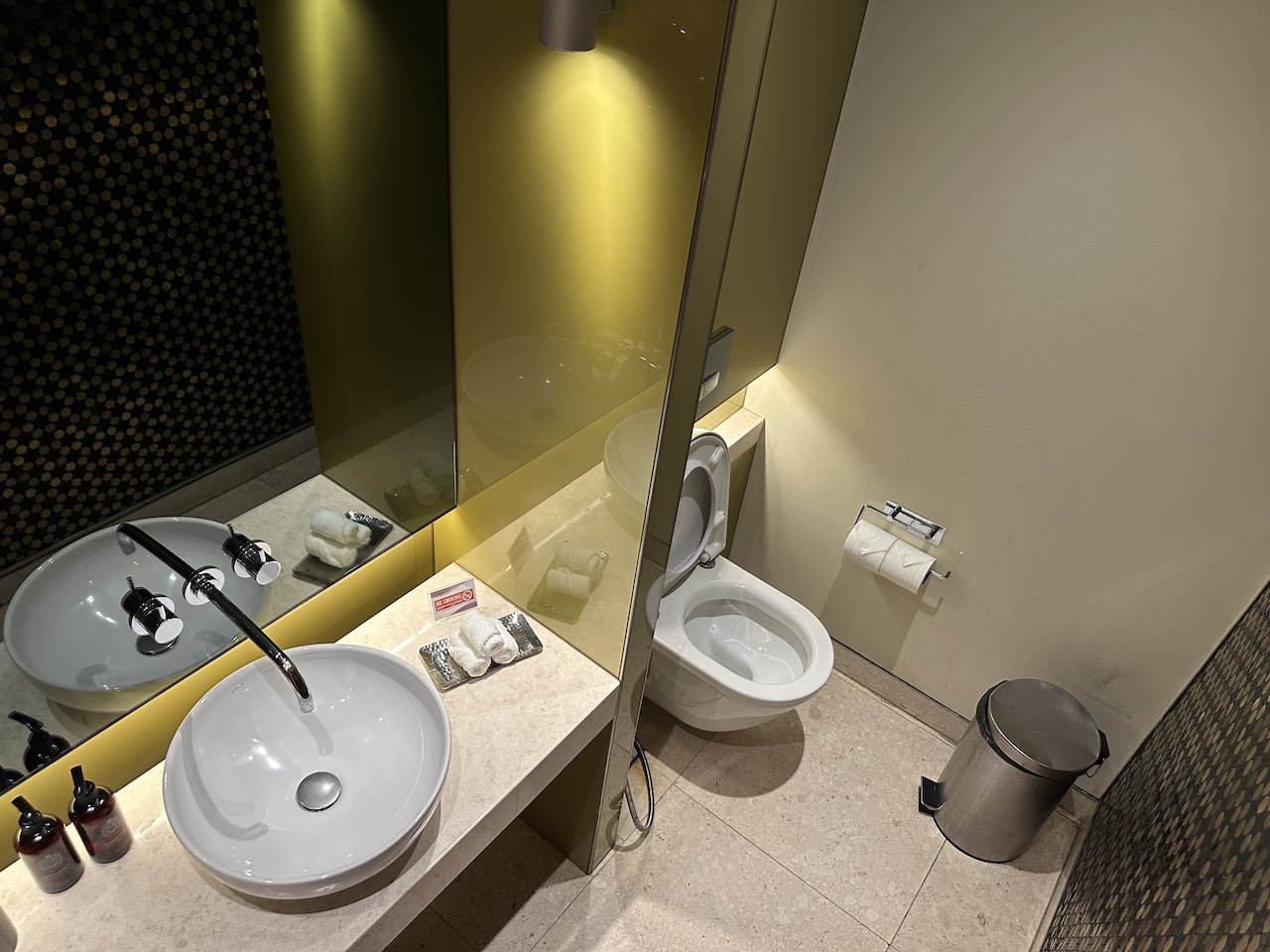 So toll ich auch das Angebot an Speisen und den Service in der Lounge finde, die Waschräume finde ich absolut undurchdacht. Es gibt für Herren nur 2, und wer sich nur mal die Hände waschen will blockiert einen. Ich hoffe, dass das in der neuen Lounge besser gelöst wird.