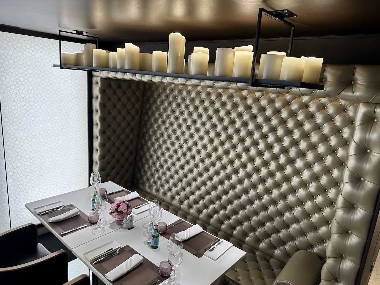Die TG „First“ ist jetzt ein mit Kordeln abgetrennter Bereich im hinteren Teil der TG Silk Prestige Lounge..das Spa incl. Massage wurde komplett geschlossen.