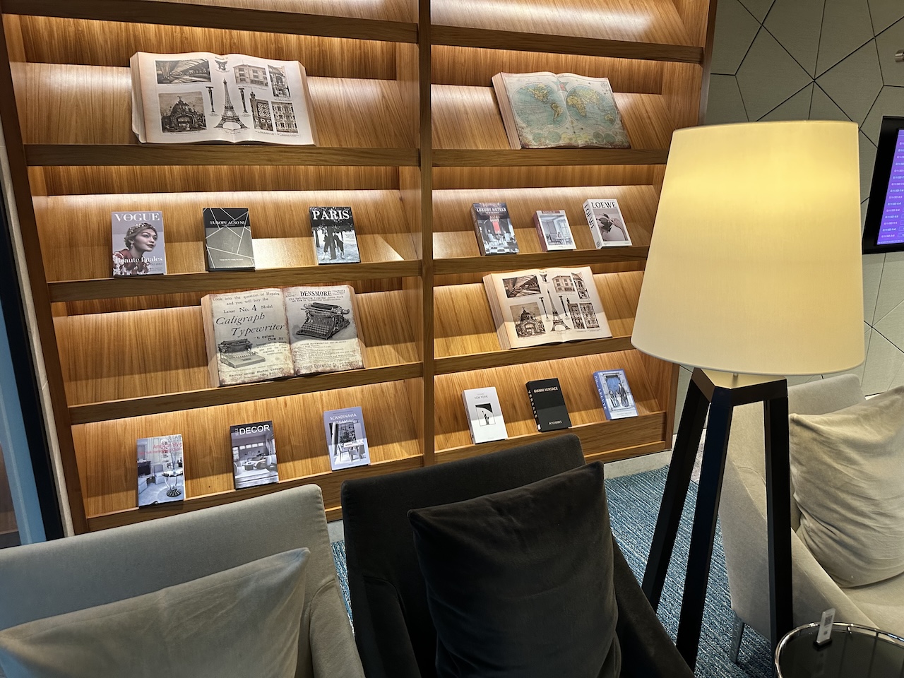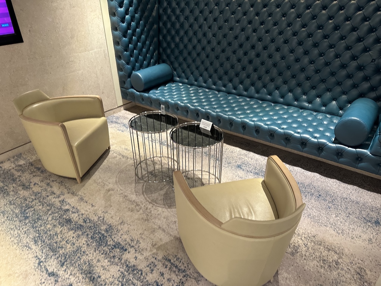 Zunächst kommt am in eine Art Lobby mit Sitzmöglichkeiten, diese befindet sich in der Mitte der Lounge. Von dort geht es weiter zu den anderen Bereichen.