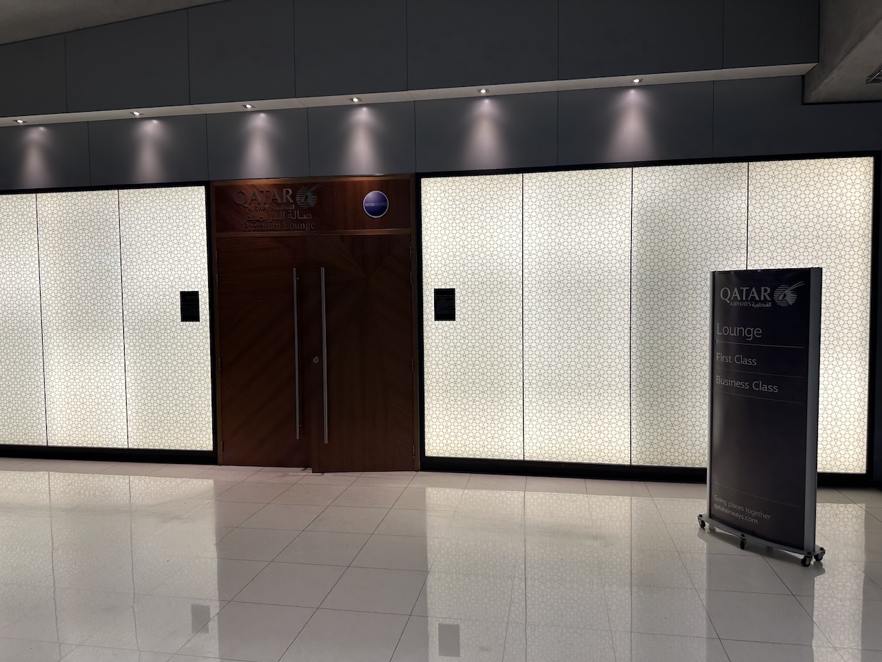 Die Lounge ist primär für die First- und Business Class Gäste von Qatar Airways gedacht und entsprechend nur vor den Abflügen des Golfcarrier geöffnet. Das ist derzeit täglich zwischen
