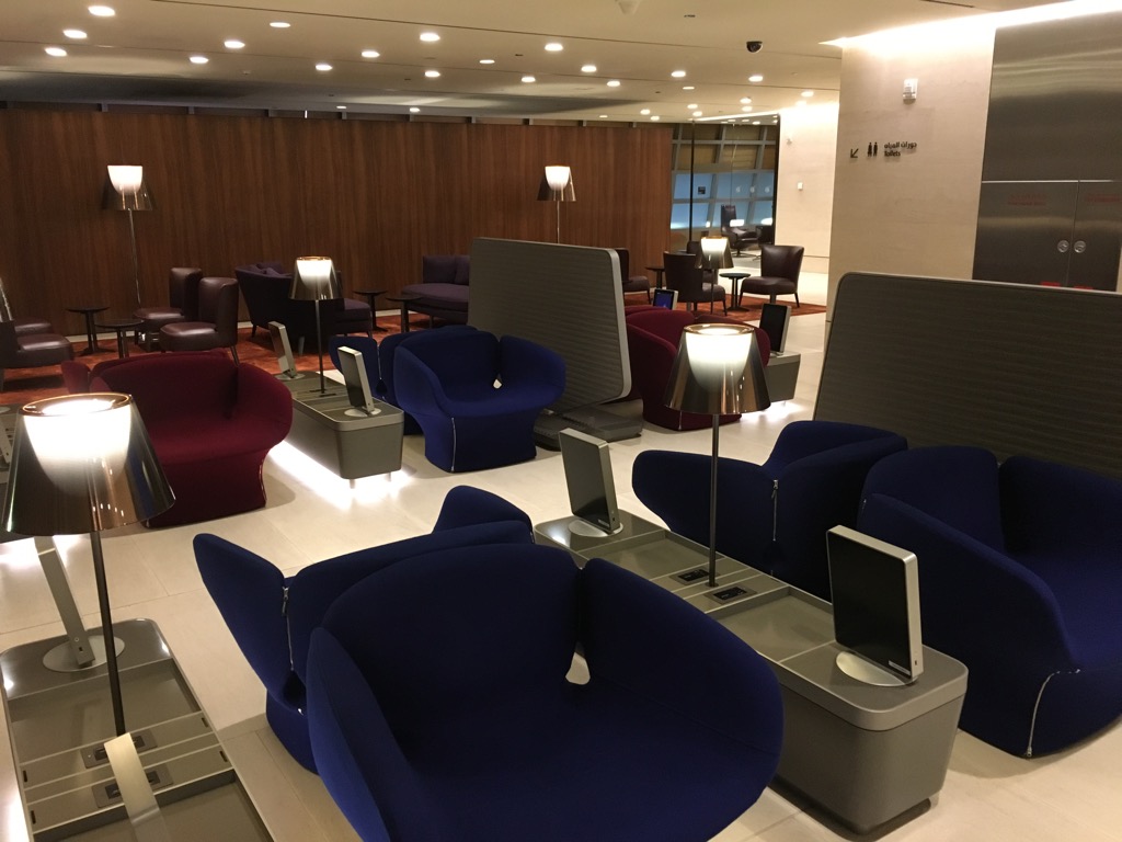 Die Lounge ist sicher kein Ort, wo sich ein geplanter, langer Aufenthalt wirklich lohnt, wenn man nach der Landung in Doha aber einfach noch duschen, frühstücken oder arbeiten will, ist sie eine tolle Option.