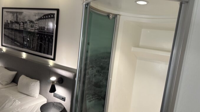 Die Dusche steht frei im Raum, dadurch ist keine Privatsphäre gegeben. Nicht wirklich durchdacht, sofern man das Zimmer nicht gerade mit dem Ehepartner oder einer ähnlich vertrauten Person teilt.