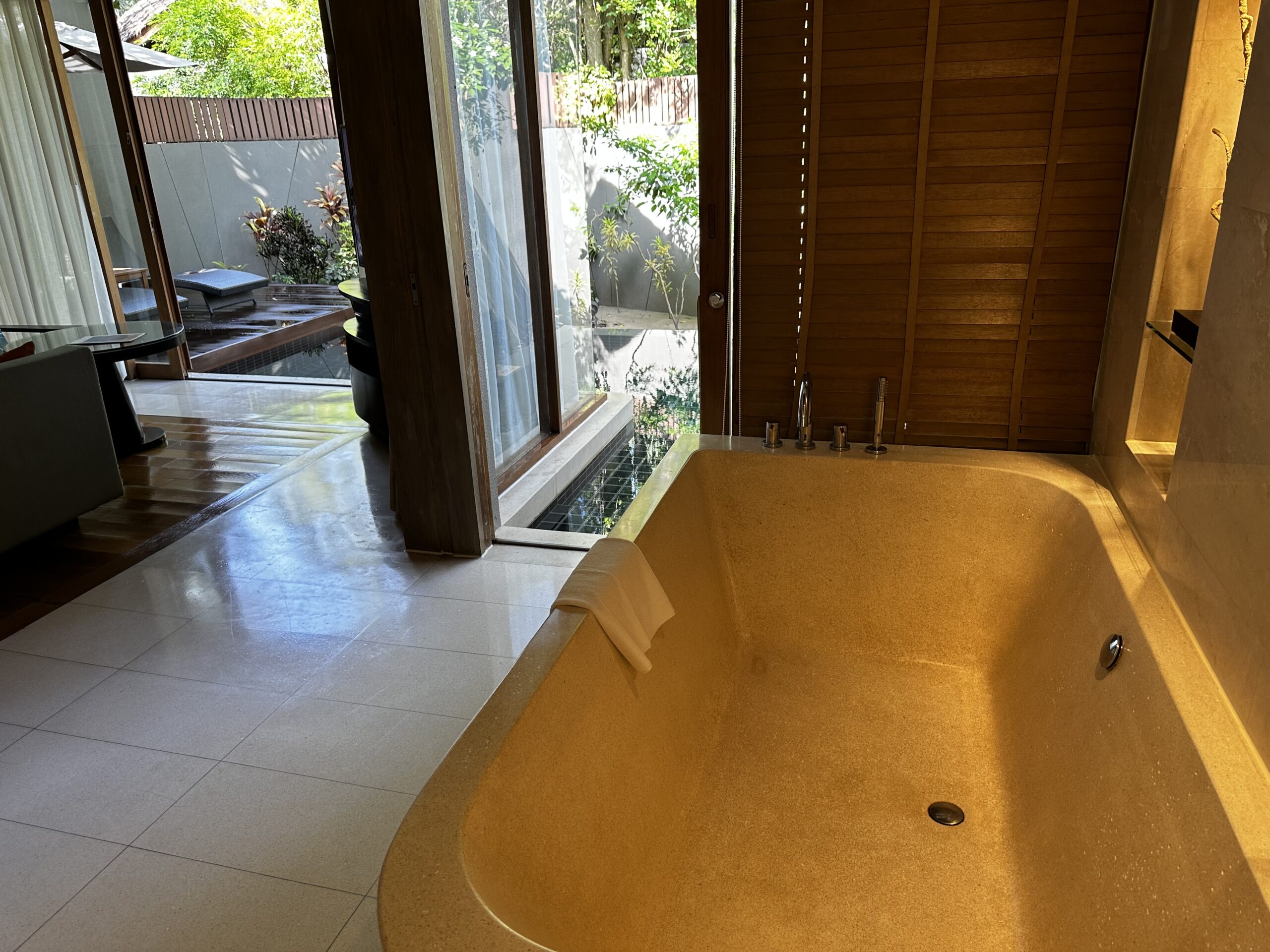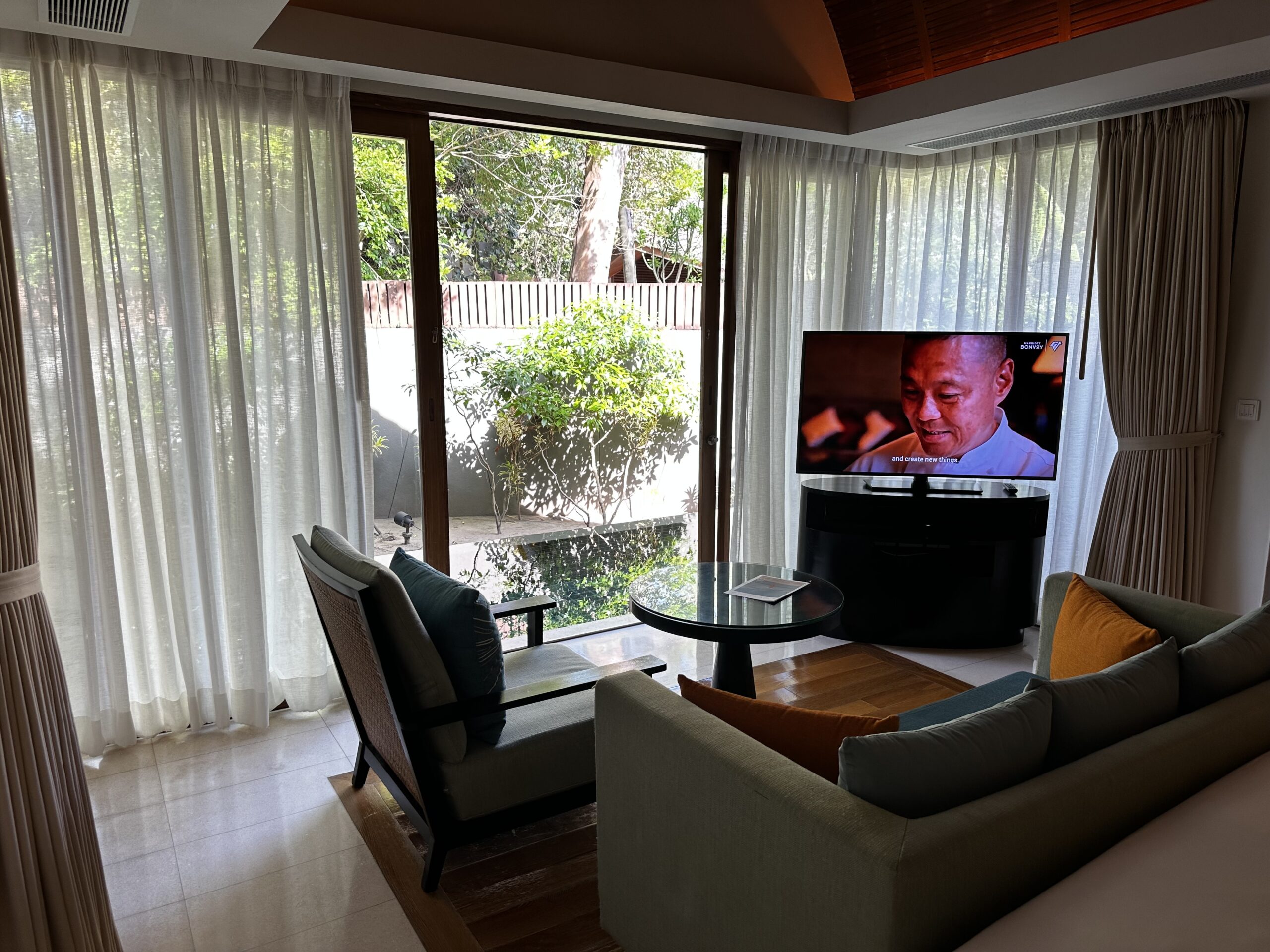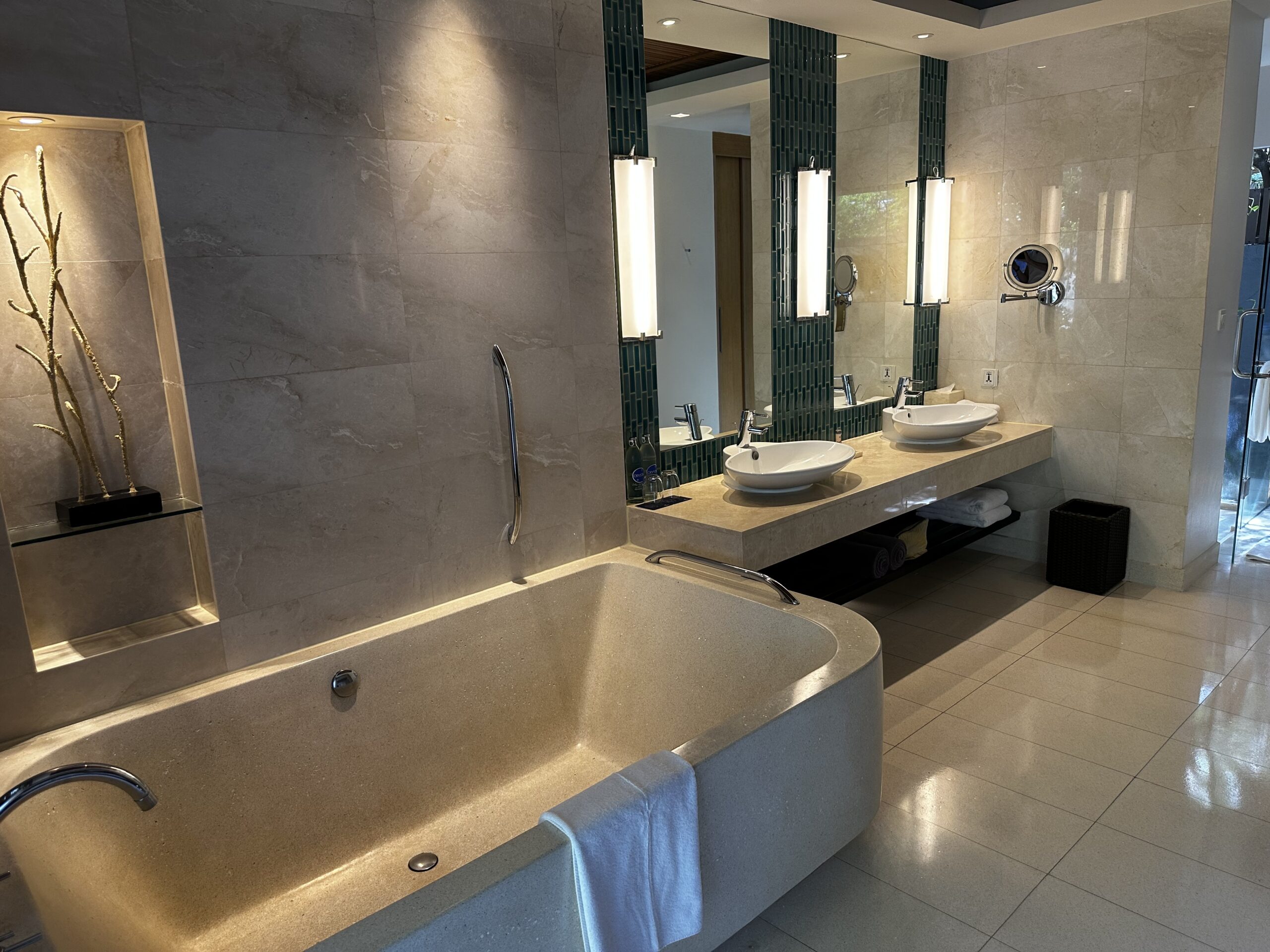 Nur wenige Minuten nach dem Eintreffen im Hotel wurden wir schon von einem Mitarbeiter gesucht, der uns darüber informierte, dass das Zimmer bereit ist. Gebucht hatte ich ein reguläres King-Zimmer, diese sind im Hauptgebäude des Hotels. Dort sind auch Suiten verfügbar, höchste Kategorien sind die Villas. Wir hatten ein solches Haus als Upgrade erhalten.