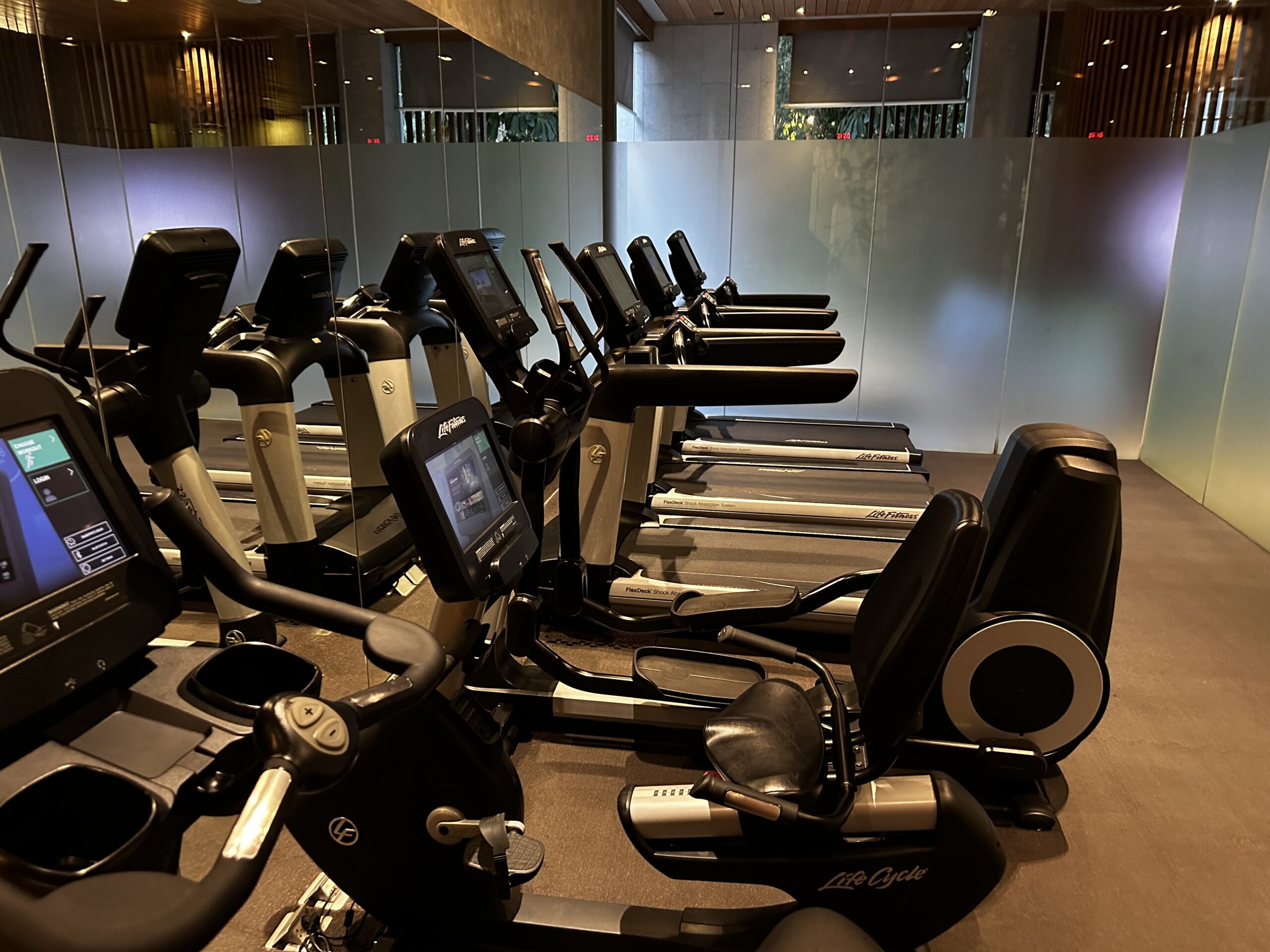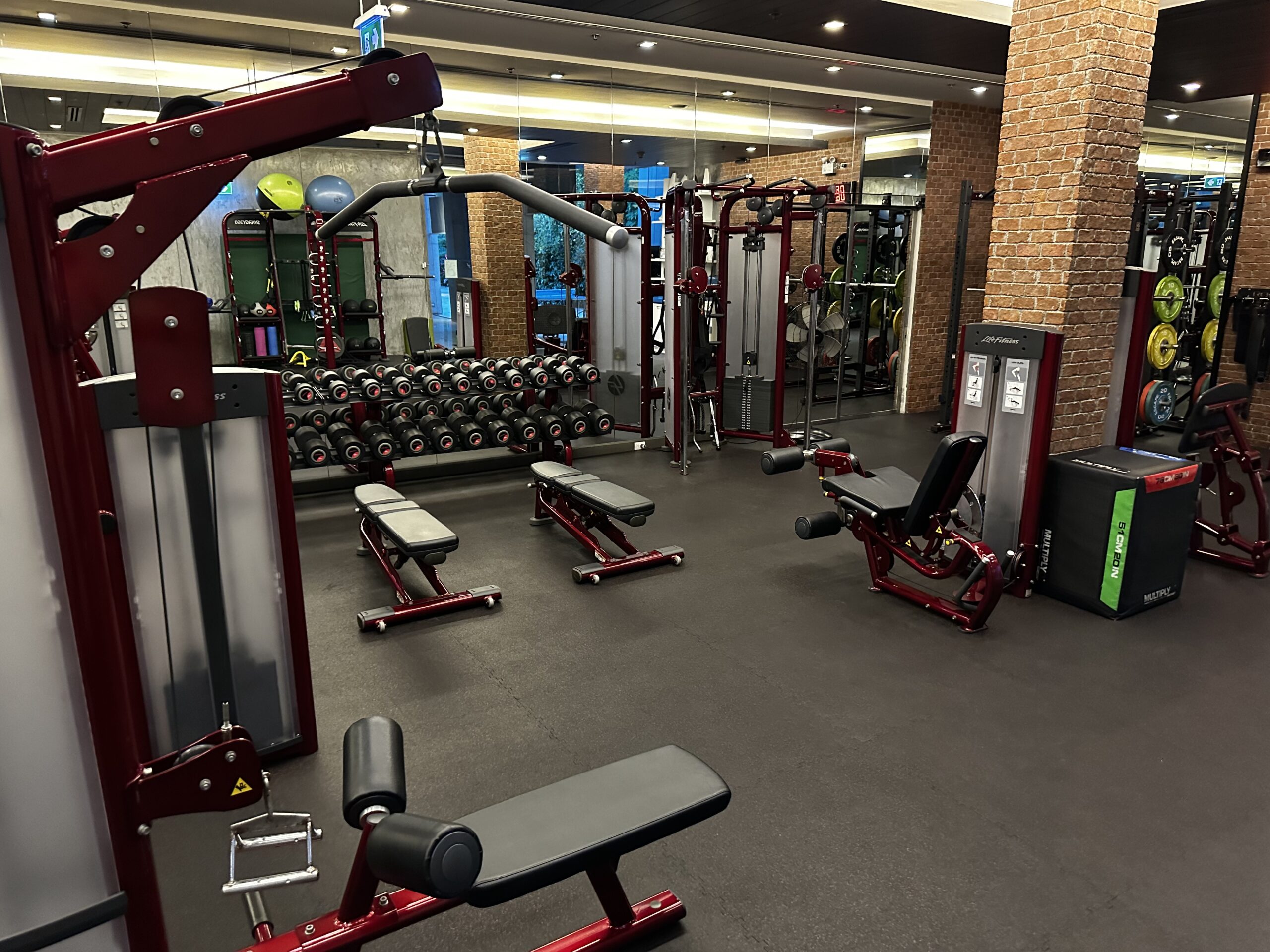 Direkt daneben liegt das rund um die Uhr geöffnete und gut ausgestattete Fitnessstudio.