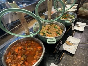 Im Hauptrestaurant wird täglich bis um 11 Uhr Frühstück serviert. Das Buffet ist riesig und bietet viel Auswahl.