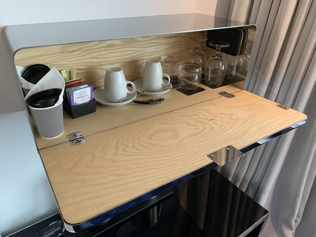Auf dem Nachttisch im Zimmer standen bereits zwei kleine kostenlose Flaschen Wasser bereit und auch Tee, Kaffee und ein Wasserkocher gab es auf dem Zimmer. Den amerikanischen Einfluss im Hotel merkte man spätestens an der Eismaschine auf jedem Stockwerk und dem dazugehörigen Eiseimer auf jedem Zimmer. Ich selbst finde dies aber durchaus angenehm.