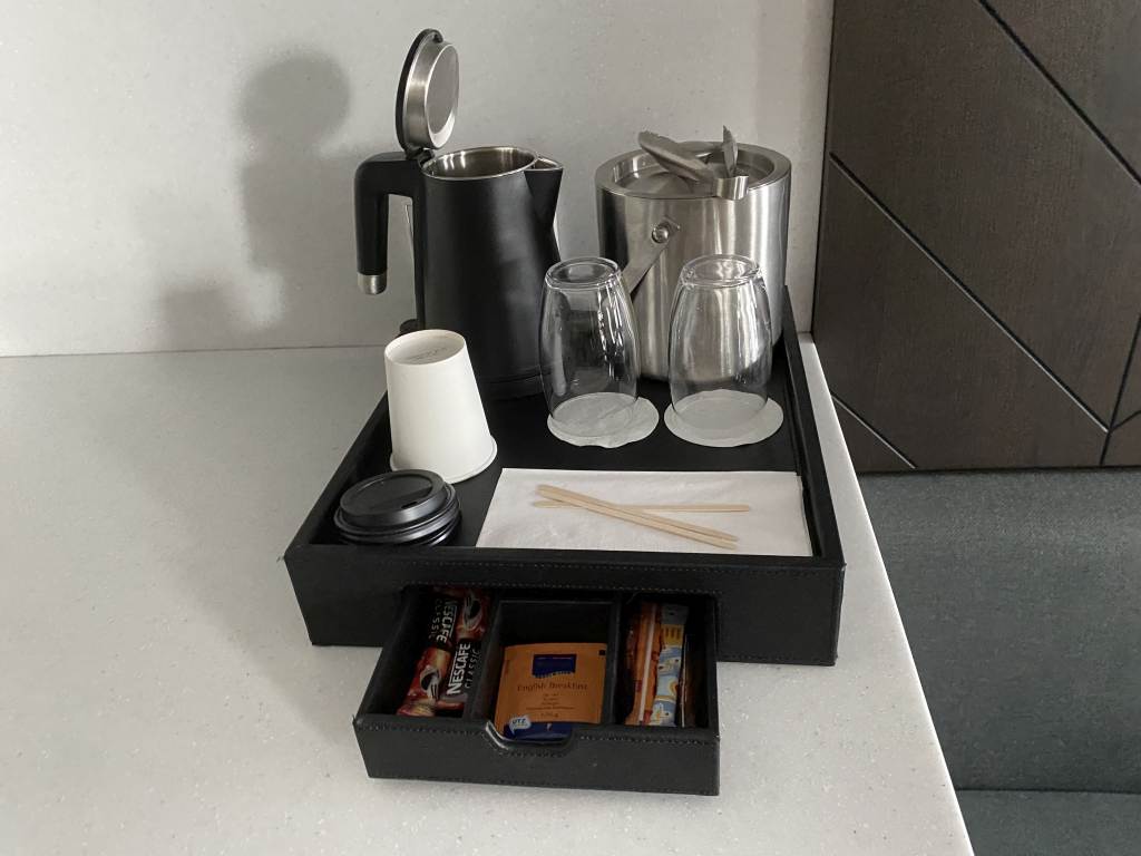 Getränke standen zur Selbstbedienung am Kaffeeautomaten und Saftspender zur Verfügung. Hier lag auch eine Auswahl an Tees bereit.