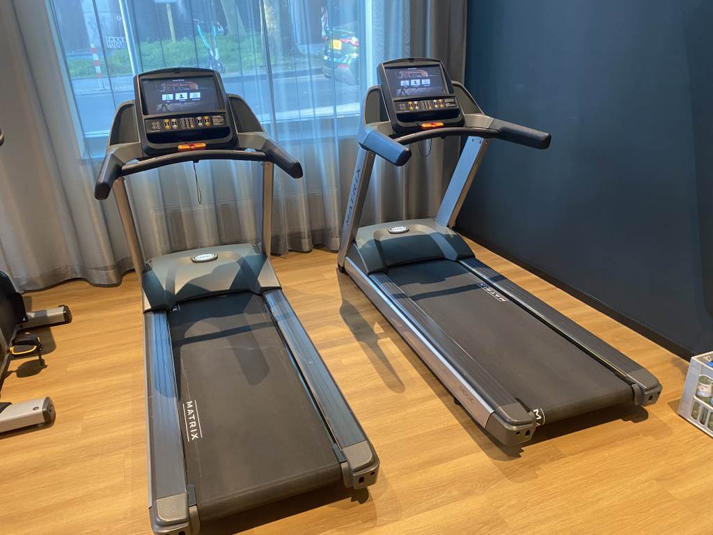 Ausgestattet ist der Fitness-Raum mit modernen Cardio- und Kraftgeräten. Je zwei Laufbänder und Stepper lassen Gäste auch paarweise trainieren. Daneben gibt es unter anderem Hanteln und ein Bike.
