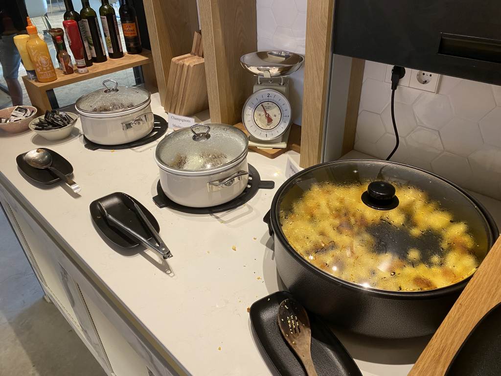 Auch warme Speisen wurden in einem separaten Bereich präsentiert. Gekochte Eier und Rührei bot das Frühstücksbüffet und wurde ergänzt durch wechselnde andere warme Optionen, wie Würstchen, Frikadellen oder Pilzen.