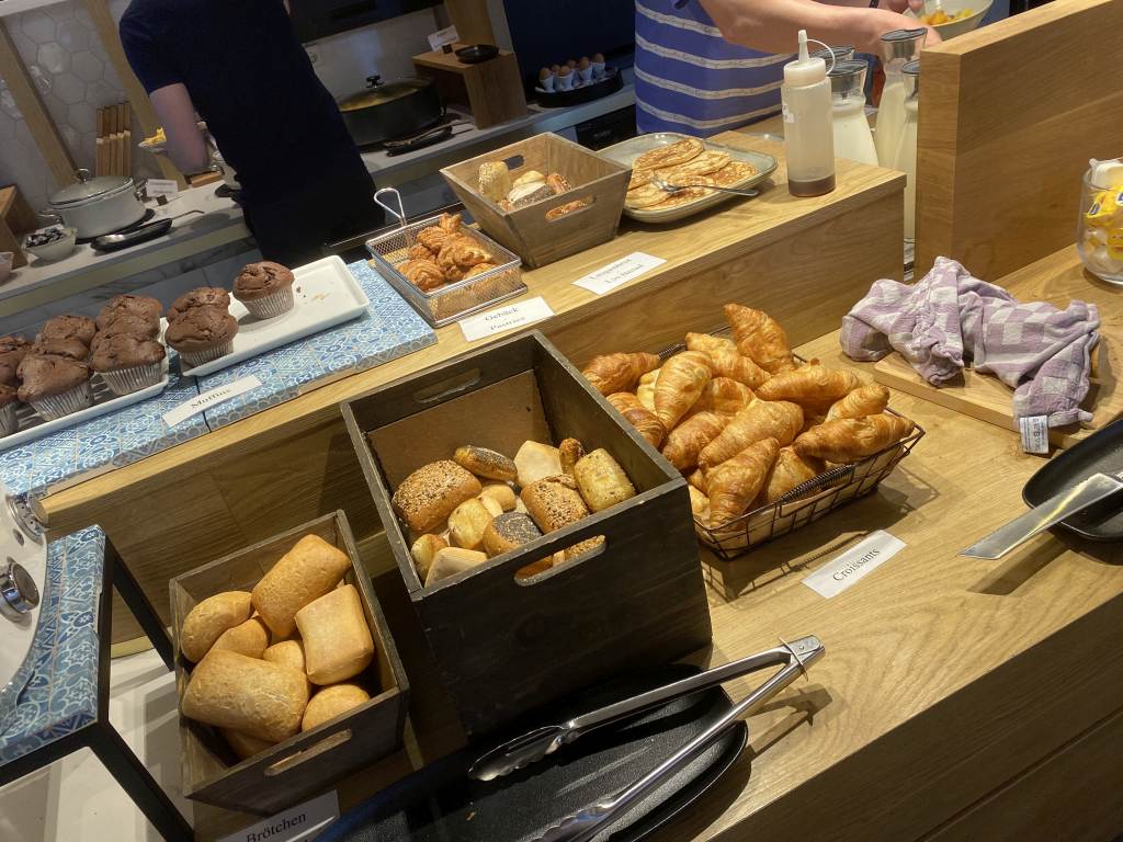 Das Frühstücks-Büffet ist überschaubar, bietet aber alles was man von einem normalen Hotel-Frühstück erwartet. Neben Brot und Brötchen stand auch Süßgebäck und Muffins zur Auswahl. Darüber hinaus gab es Frühstück und andere Cerealien, sowie ein kleines Salatbüffet und Quark. Zum Belegen oder Bestreichen der Brote und Brötchen gab es eine Selektion an Wurst und Käse, Marmelade, Nutella und Honig.