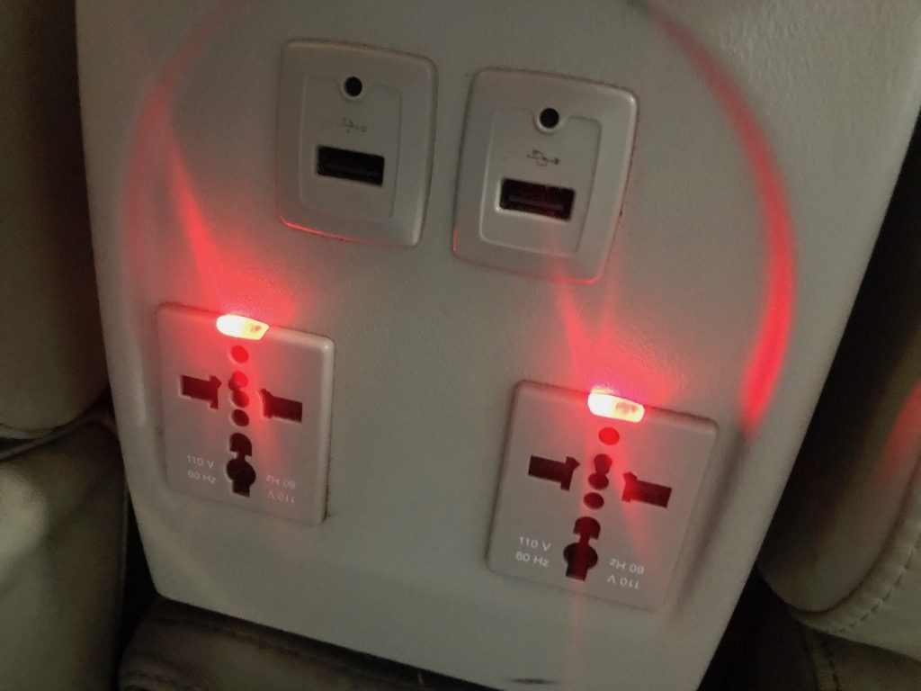 Jeder Sitz hat jeweils eine Steckdose und einen USB-Anschluss. Zeitschriften und Zeitungen waren an Bord Mangelware, Internet war gar nicht verfügbar.