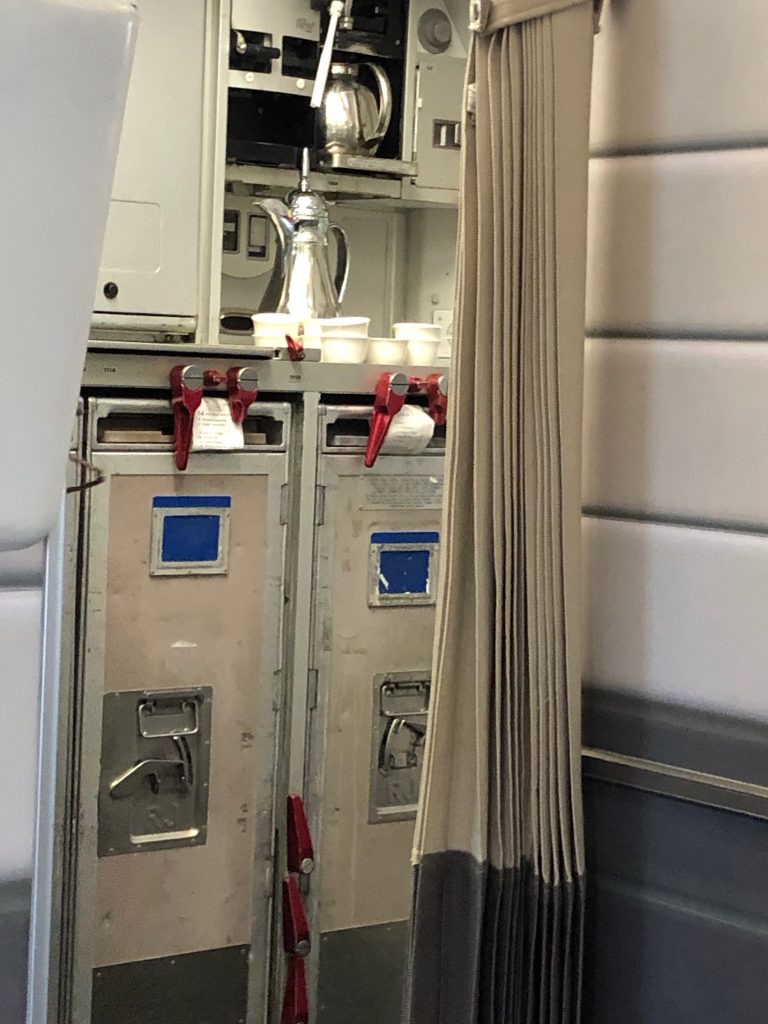 Ein Nachteil ist es, wenn man in der Lounge entspannen möchte, die unberechenbare Sicherheitskontrolle aber noch bevorsteht. Laut Bordkarte begann das Abenteuer Boarding eine volle Stunde vor Abflug, man sollte spätestens 45 Minuten vorher da sein und 20 Minuten war Deadline zum Schließen des Gates. In Wirklichkeit begann das Einsteigen erst 25 Minuten vor Abflug, vollkommen ausreichend für nicht mal 150 Gäste. Los ging es mit dem Aufruf für Crown-Passagiere und Statuskunden.