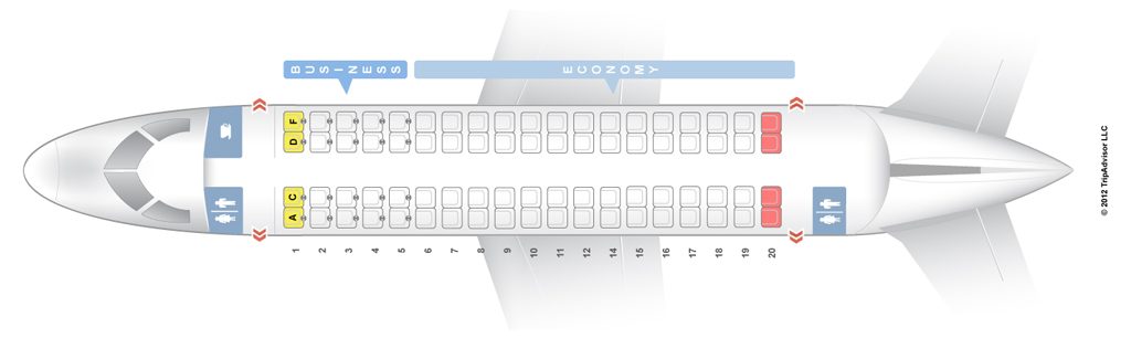 Der Embraer 170 verfügt über eine Kabine in einer 2-2-Anordnung.