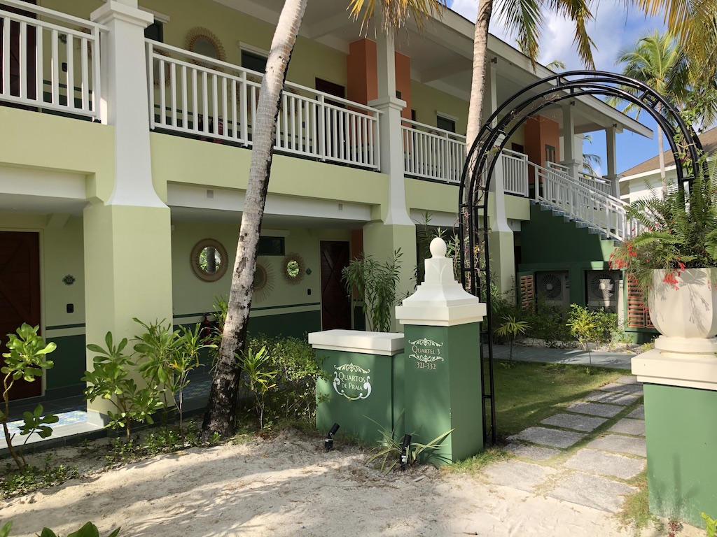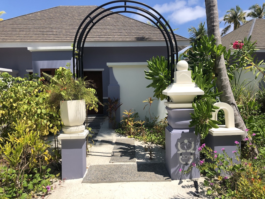 Bereits vor der Ankunft konnte ich in der App erkennen, dass wir auf eine Villa am Strand upgegraded wurden. Pro Gebäude sind in dem Fall zwei Wohneinheiten untergebracht. Jedes Zimmer hat einen gesonderten Eingang, im Garten dienen Pflanzen als Abtrennung.
