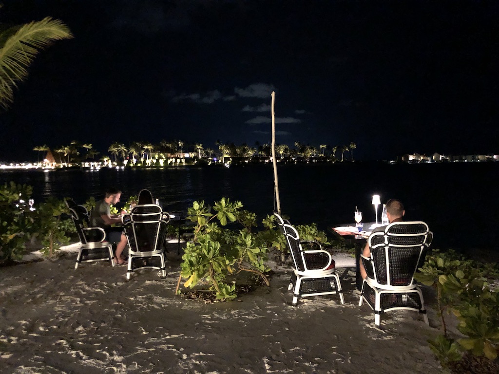 Ich empfehle ein Buchung mit Halbpension, die Auswahl in Sachen Restaurants ist auch nach mehreren Tagen abwechslungsreich. Aber auch sonst sind die Preise der Nebenkosten für ein Resort auf den Malediven human. Cocktails gibt es schon unter 10$, eine drei Gänge Menü lag bei unter 150$ für zwei Personen. Im Hard Rock Cafe wären es sogar nur etwa 100$ gewesen. Wasser gibt es in großen Flaschen nicht nur im Zimmer, sondern auch ohne Aufpreis und über den ganzen Tag an den Bars.