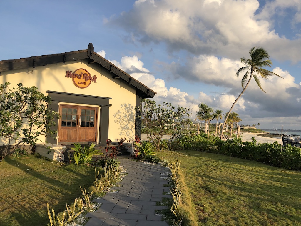 Mit einem Buggy wurden wir über die Anlage gefahren, ein Mitarbeiter erklärte uns die Einrichtungen genauer und welche Möglichkeiten für Frühstück, Abendessen oder Aktivitäten geboten werden. Die Restaurants und der Pool des benachbarten Hard Rock Hotel können ebenfalls genutzt werden.