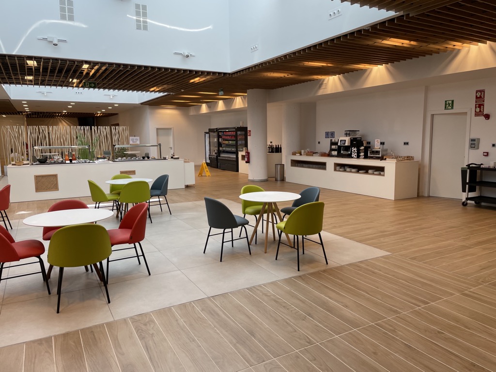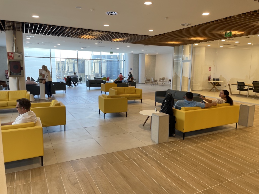 Die Sala Mediterraneo wurde wie eingangs erwähnt offensichtlich vor kurzem frisch renoviert und entsprechend modern wirkte die Lounge auch direkt. Dabei ist mir aufgefallen wie großzügig hier alles gestellt war und ich kann nicht sagen ob dies teil des Konzeptes oder noch ein Überbleibsel aus der Pandemie ist, unangenehm war es aber sicherlich auch nicht.