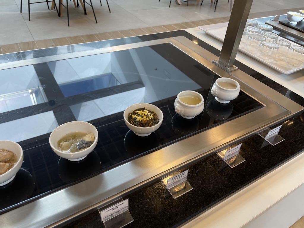 Lustig fand ich das Buffet mit warmen Speisen, wo acht verschiedene warme Optionen in kleinen Portionen beriet gestellt wurden, allerdings von jeder Option nur ein Portion. Dabei wirkte es im ersten Moment auf mich wie ein Display von dem man bestellen soll, aber tatsächlich wurde einfach immer nachdem eine Speise weggenommen wurde diese direkt wieder nachgelegt, aber immer nur eine Portion.