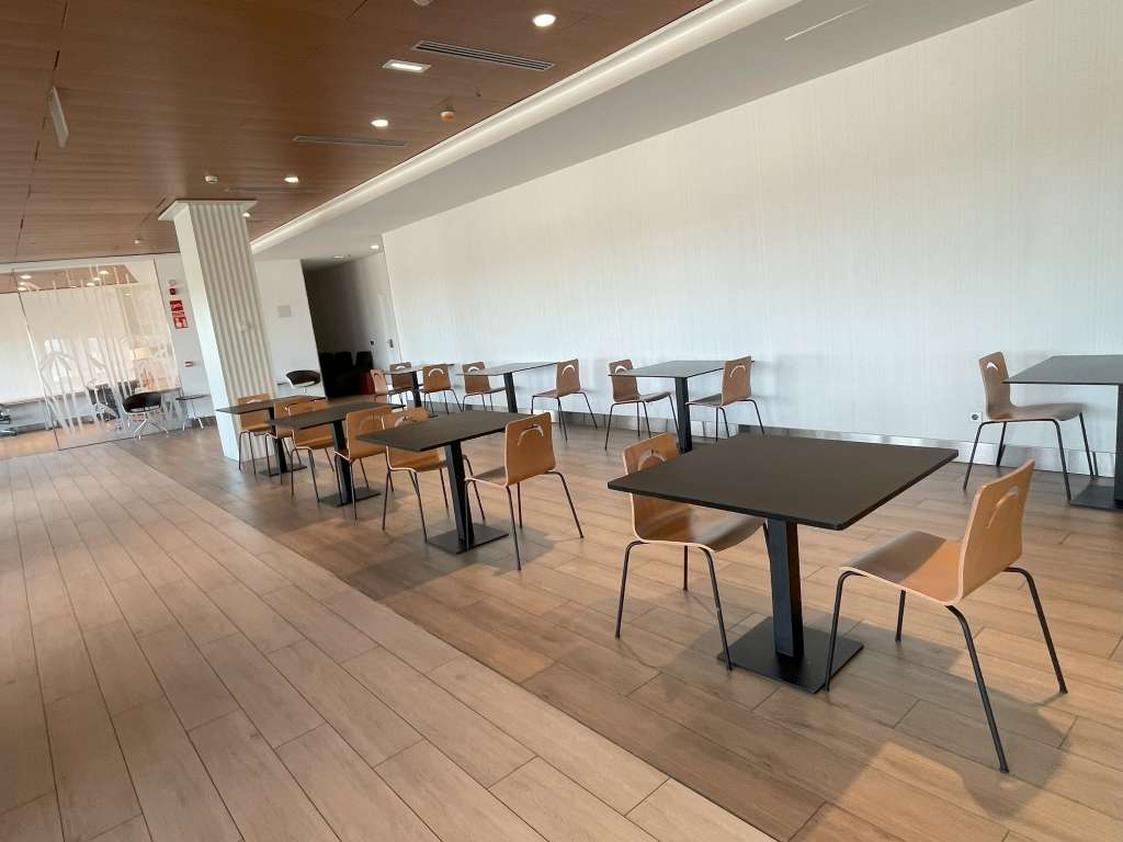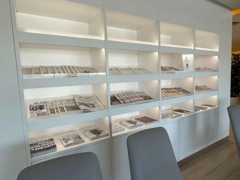 In der Puerta de Alcalá Lounge wurde bereits ein neues Designelement mit weißen Regalen und Sideboards angewendet. Die Polstermöbel sind in den Farben rot, beige und grau gehalten, während bei den sonstigen Tischen und Möbeln Holzdekor dominiert.
