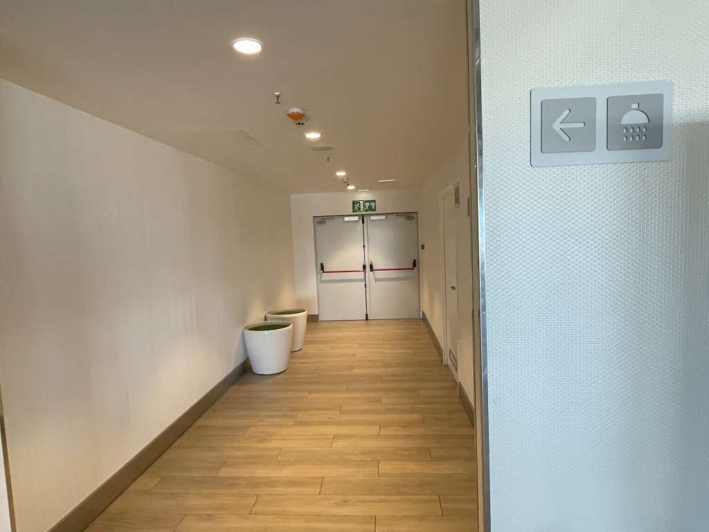 Kurz vor dem Kiosk, den Ihr normalerweise durchschreiten müsst, gibt es rechter Hand einen Aufzug. Dieser Aufzug bringt Euch direkt zur Lounge auf der 2. Etage.