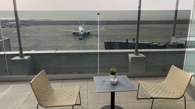 Eine relative unspektakuläre Lounge, die uns auf den ersten Blick nicht vom Hocker gerissen hat. Als wir die Terrasse entdeckt haben, gab es schon erste Pluspunkte. Vorfeldblick ist immer ein Vorteil, erst recht wenn bedenkt dass in vielen Lounges nicht einmal Tageslicht selbstverständlich ist.