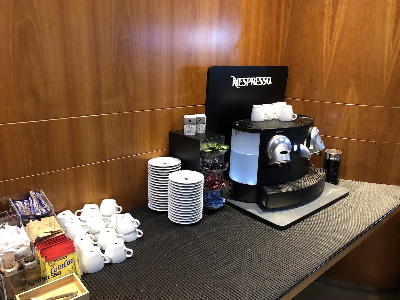 Neben Säften und Softdrinks kann man sich Bier, Wein und Cava einschenken. Als Heißgetränke standen Kakao, Tee und Kaffee aus der Nespresso-Maschine bereit.