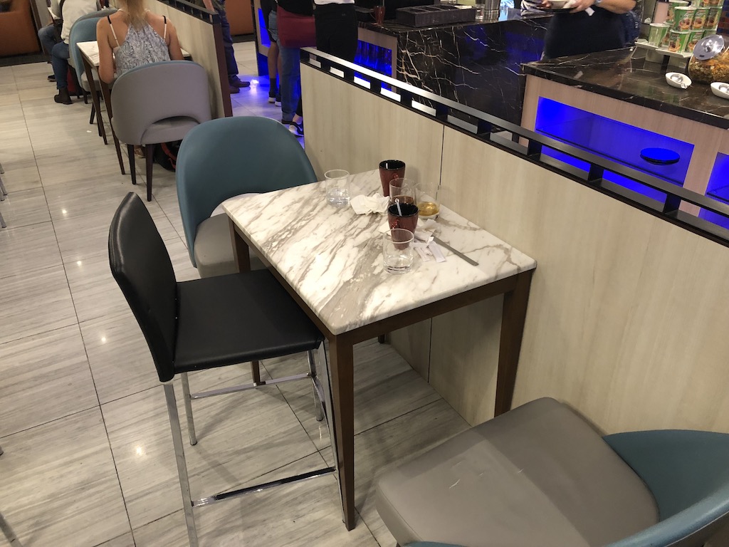 Grundsätzlich hatte die Lounge während meines Besuchs eine recht hohe Auslastung, dennoch war ein aktiver Service des Personals kaum erkennbar. Dementsprechend dreckig bzw. unaufgeräumt war auch der Buffetbereich.