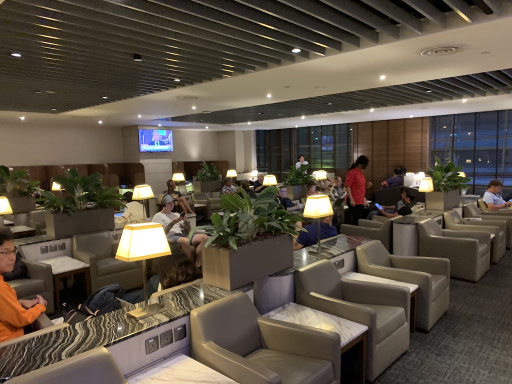 Die SATS Premier Lounge Singapur ist im Grunde ein großer Raum, welcher in eine Lounge und einen Restaurantbereich unterteilt ist. Dabei findet man im Loungebereich eine Reihe von Sesseln, die in mehreren Reihen gestellt waren.