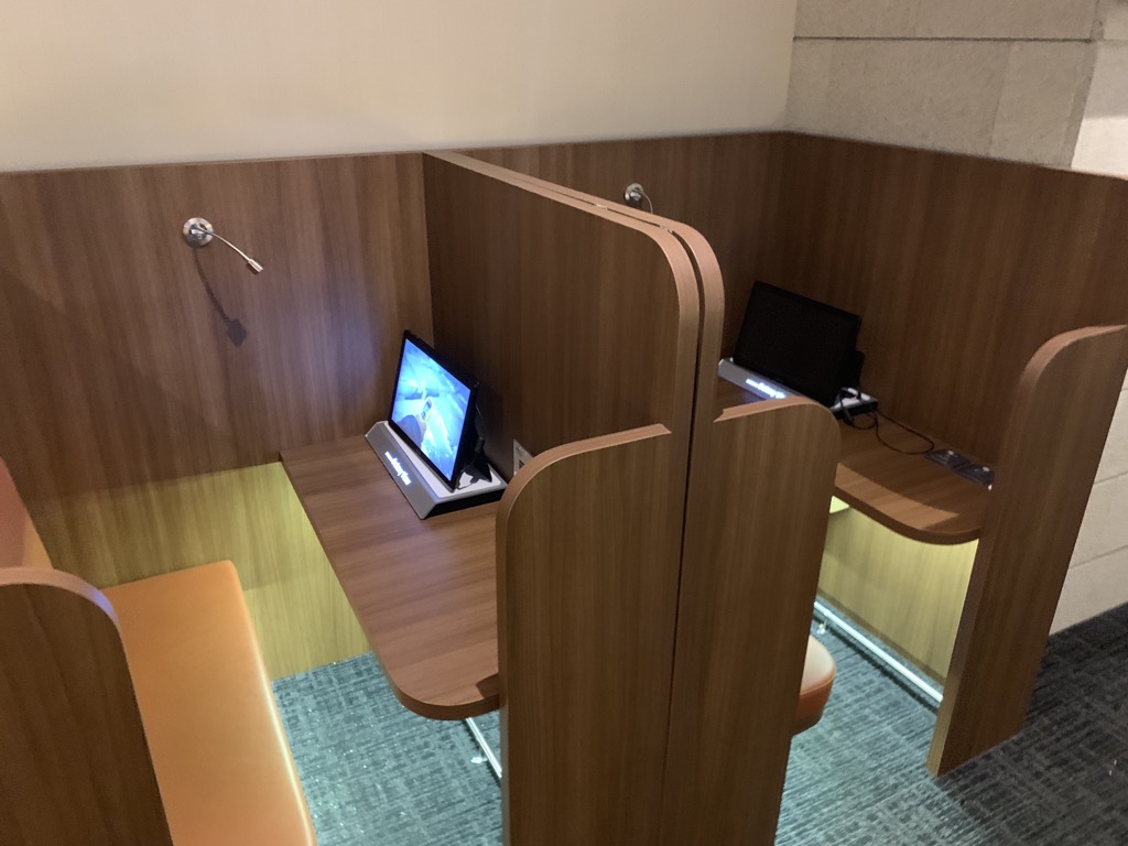 An den Wänden der Lounge befanden sich durch Raumtrenner abgetrennte Bereiche, welche teilweise Arbeitsplätze darstellten und auch noch Ruhebereiche mit Massagesesseln.