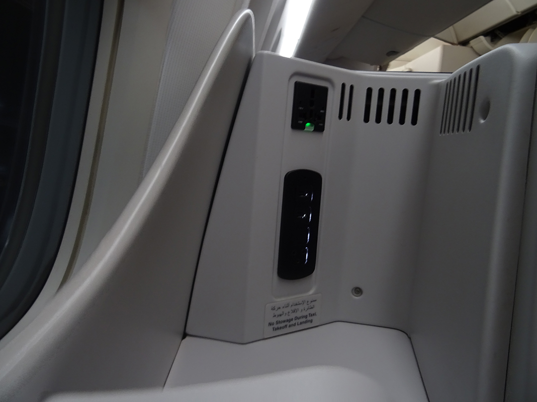Die Kopfhörerbuchse befand sich in der Ablage direkt am Sitz. Da mein Nachbarsitz frei blieb, konnte ich einfach aufstehen und mich frei bewegen. Ansonsten ist jedoch etwas Akrobatik gefragt, die zum Glück nur einmal notwendig ist. Ich vermute, dass an der Position ein Großteil der Technik des Sitzes ist und deswegen die Buchse genau dort positioniert wurde, wünsche mir als Passagier aber eine andere.
