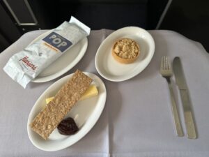 Der Service unterschied sich auch nicht zu den hinteren Reihen, es wurde eine Tee-/Kaffe-Runde angeboten. Mehr Service gab es auf den Flügen nicht und ist auch nicht vorgesehen, da die Vorteile der Business Class nur am Boden stattfinden (Fast-Track, Lounge und Priority Boarding).