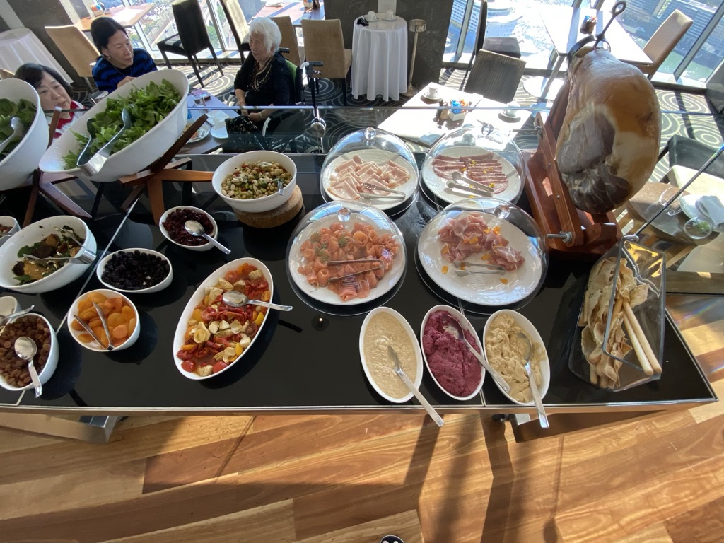 Diese Tafel endet im schönsten Raum des Hotels, welche auch auf 99 von 100 Bildern des Shangri-La auf Instagram ist. Kein Wunder, denn erstens sind da die allesamt köstlichen Backwaren zu finden und dann gibt es dazu noch einen fantastischen Blick. Dieser Bereich war wirklich einzigartig!