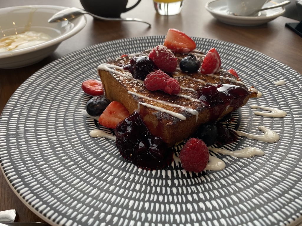 An Eurem Platz, welchen Ihr Euch theoretisch aussuchen könnt (außer am Sonntag, da da das Hotelrestaurant für jeden zum Brunch geöffnet ist), werdet ihr sofort von einem Kellner begrüßt. Dieser bringt Euch eure Getränke nach Wahl sowie ein weitere Gericht aus der Karte, jedoch nur eins und selbst gegen Aufpreis gibt es kein zweites Gericht. Das wirkte auf mich etwas eigenartig.