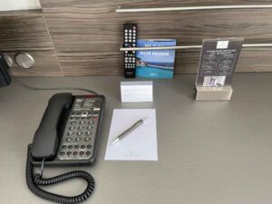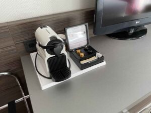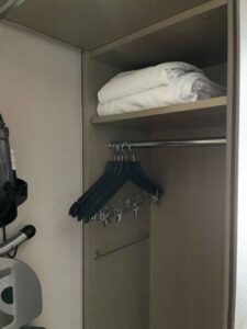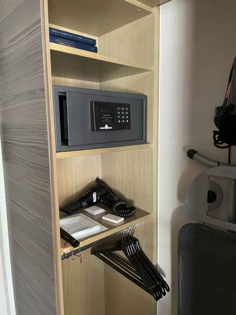 Nebenbei erwähnte der Mitarbeiter an der Rezeption, dass uns ein Babybett ins Zimmer gestellt wurde. Das war allerdings unnötig und über den Chat vor den Anreise hatte ich explizit erwähnt, dass wir kein Baby- oder Zustellbett benötigen. Da es unnötig Platz in den mit 25 Quadratmetern eh schon kleinen Zimmern wegnimmt, haben wir nochmals das Zimmer getauscht.