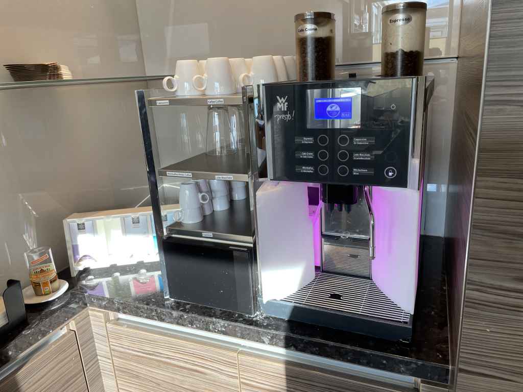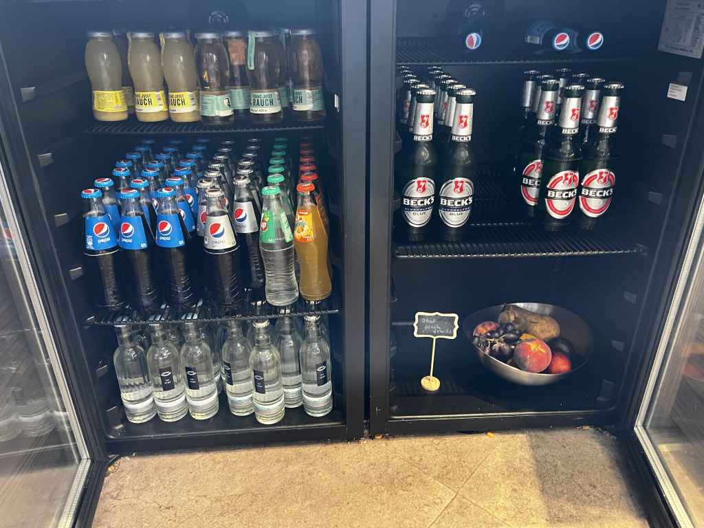 Getränke, also Heißgetränke, Softdrinks, Wein und Bier gibt es den gesamten Tag über bis 23 Uhr in der Lounge.