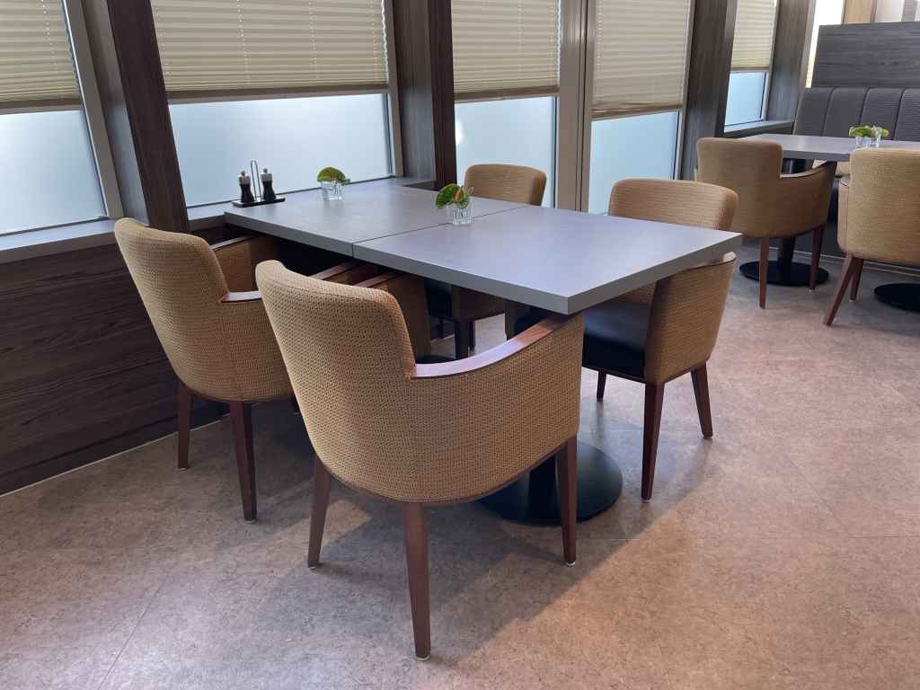 Die Lounge findet Ihr im Gang, der zum Restaurant führt, linker Hand. Die Schlüsselkarte öffnet die Tür zur Club Lounge, die für ein Flughafen-Hotel erstaunlich klein wirkte und bei unserem Ankommen auch komplett leer war. Später gesellten sich noch zwei weitere Gäste zu uns.