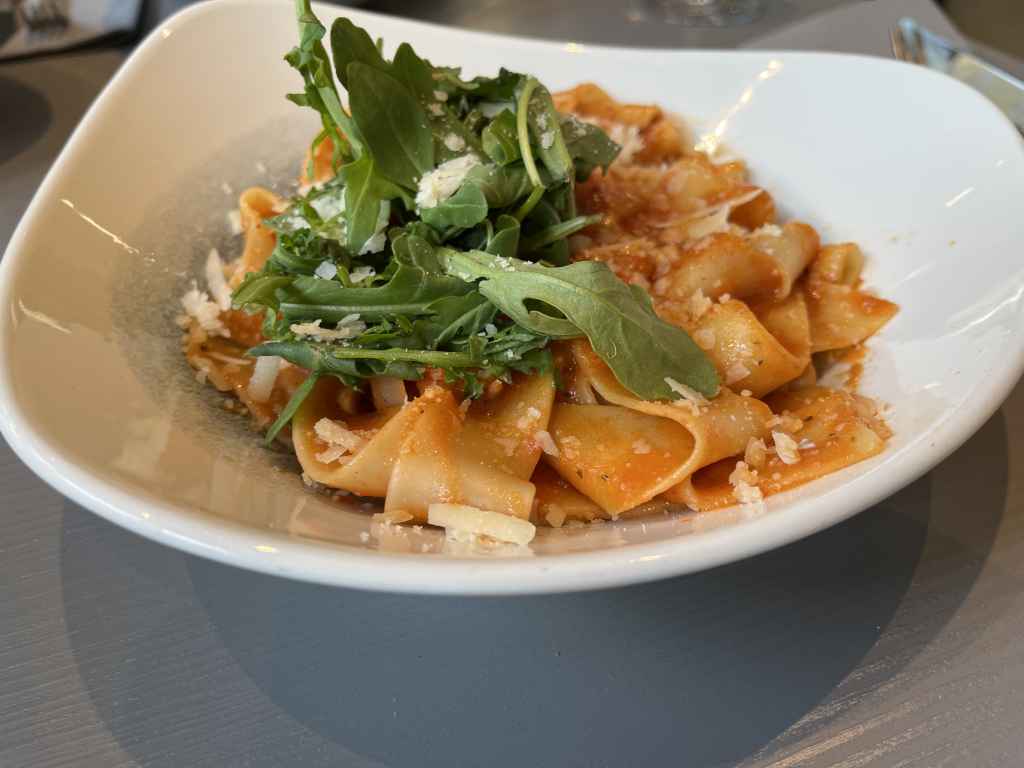 Überschaubar war leider auch der Geschmack der Papardelle. Sowohl in der Pesto- als auch in der Tomatensoßen-Version. Das macht das Sheraton Hannover, die derzeit auch Essen auf Bestellung servieren, deutlich besser.