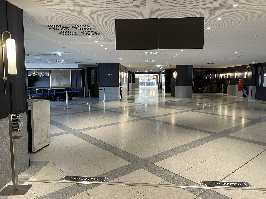 Der Service war bemerkenswert langsam, da kaum Personal vorhanden war, um die Gäste zufriedenstellend zu bedienen. Als „Coronaschutzmaßnahme“ schloss die gut besetzte Bar bereits um 23 Uhr. Gästen, die noch etwas trinken wollten, wurde empfohlen, sich im Regionalbahnhof bei Scoom einzudecken.