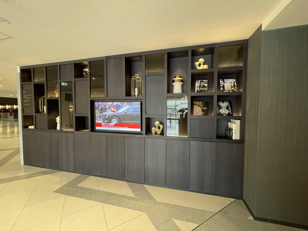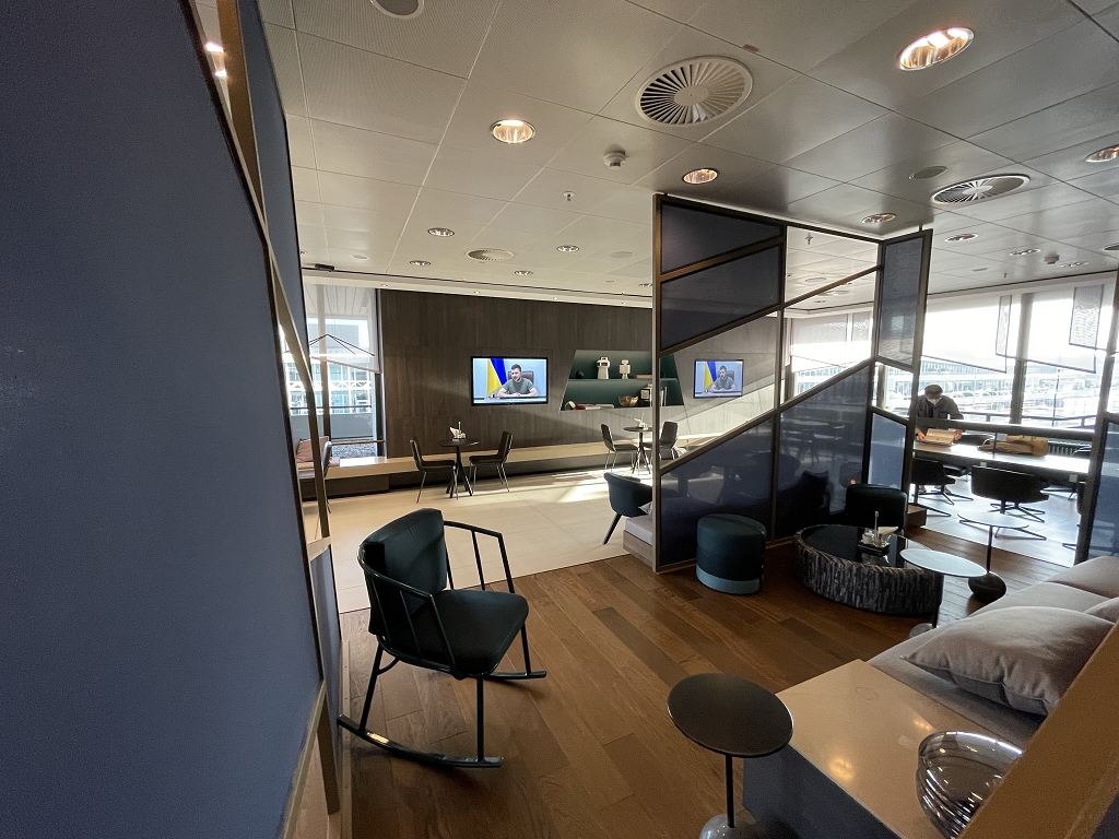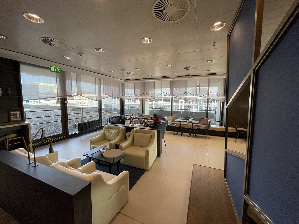 Da die Lounge auch vom Marriott Hotel als M Club genutzt wird, ist sie vollkommen unterdimensioniert. Beide Hotels kommen auf über 1.000 Zimmer und die Lounge bietet – geschätzt – 60 Sitzplätze.