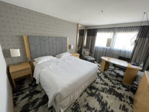 Das Hotel bietet auf 9 Etagen ca. 770 Gästezimmer (davon 236 Premium und Club-Zimmer) und zehn Suiten. Zudem gibt es Konferenzräume, gratis WLAN und ein Fitnessstudio. Es gibt eine Lounge, eine Bar und ein Restaurant. Angeblich hat das Hotel auch einen Pool, der jedoch zu unserem Aufenthalt geschlossen war.