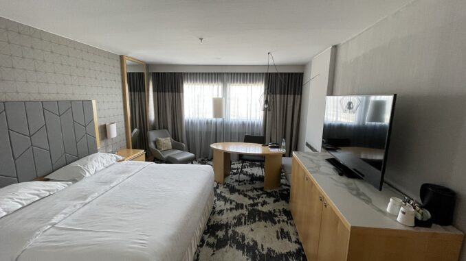 Das Sheraton Frankfurt Airport war jahrelang das Flughafenhotel schlechthin am Frankfurter Flughafen. Mit seiner Lage direkt gegenüber von Terminal 1 liegt es näher am Flughafen als alle anderen Hotels. Allerdings hat es inzwischen Konkurrenz am Standort erhalten und musste Teile seiner Fläche an ein Marriott Hotel abtreten. Hier erfahrt Ihr, wie sich das teilrenovierte verkleinerte Sheraton schlägt.