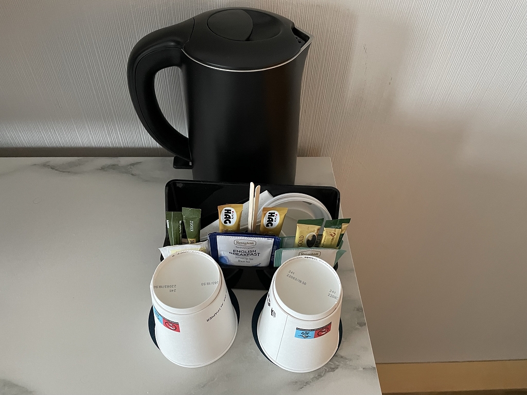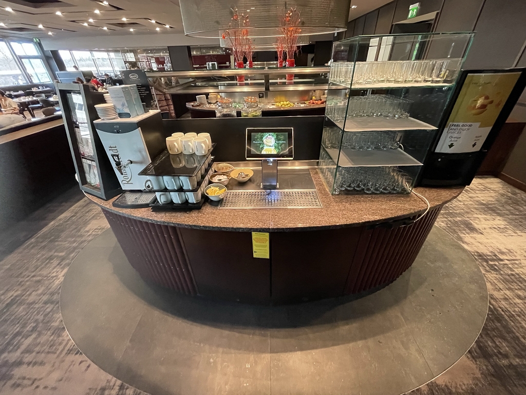 .Ein nettes Feature war der Vollautomat mit ToGo-Bechern in der Nähe des Ausgangs. Damit konnte man sich auf dem Weg zum Flughafen noch einmal ein Heißgetränk mitnehmen.