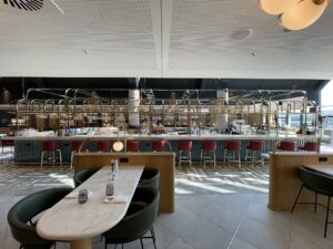 Die Bar selbst ist groß und bietet viele Sitzplätze am Tresen. Darüber hinaus gibt es noch viele Tische in dem Bereich, an denen man Platz nehmen kann.