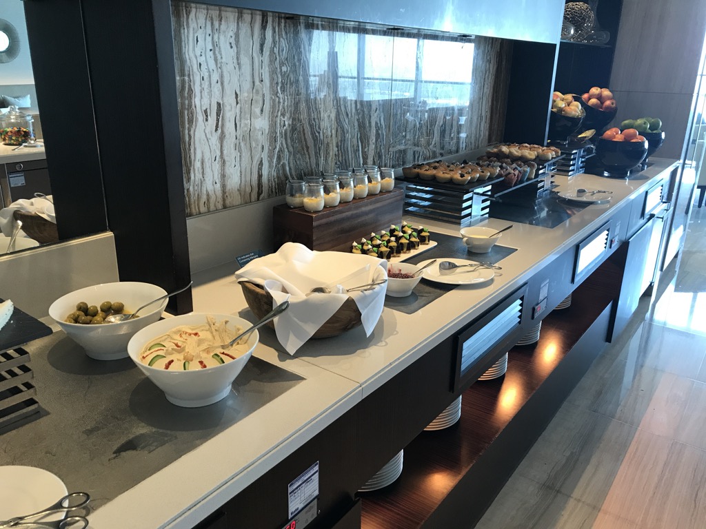 Außerhalb der Happy Hour wurden Soft Drinks und Snacks angeboten. Bei der Happy Hour gab es kalte und warme Kleinigkeiten. Alles hat sehr gut geschmeckt und das Buffet wurde regelmäßig aufgefüllt. Das Personal in der Lounge war klasse. Man saß nie vor leeren Gläsern oder schmutzigem Geschirr. Am Buffet wurde immer zügig alles aufgefüllt und sie waren sehr aufmerksam. So wusste ein Mitarbeiter nach unserem ersten kurzen Besuch bereits was wir gerne trinken.