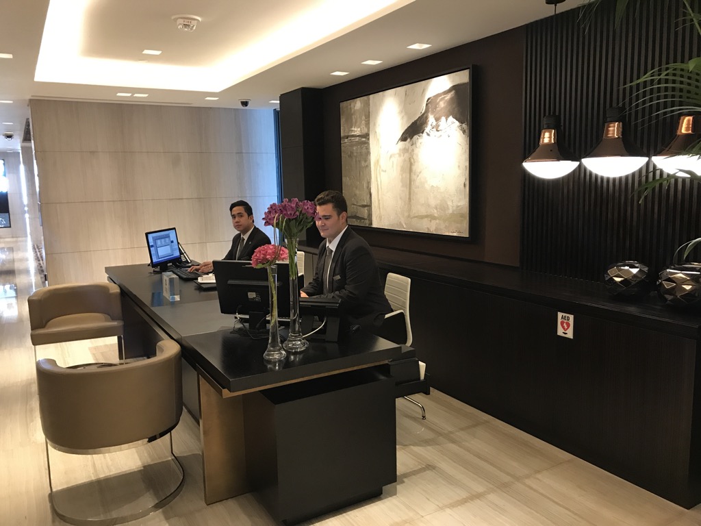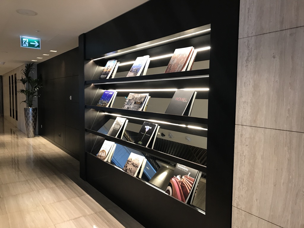 Die Executive Lounge durften wir dank des Status besuchen. Nach dem Betreten, sah man die Rezeption, an der einige Mitarbeiter arbeiteten. Gegenüber der Rezeption befand sich einiges Lesematerial.