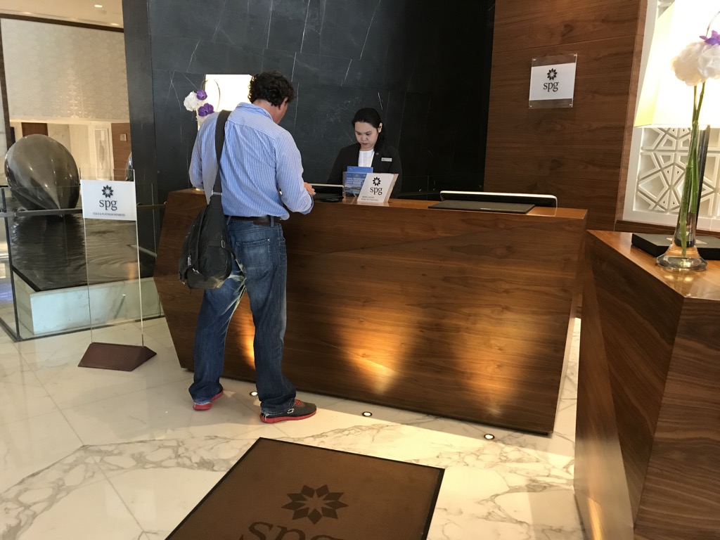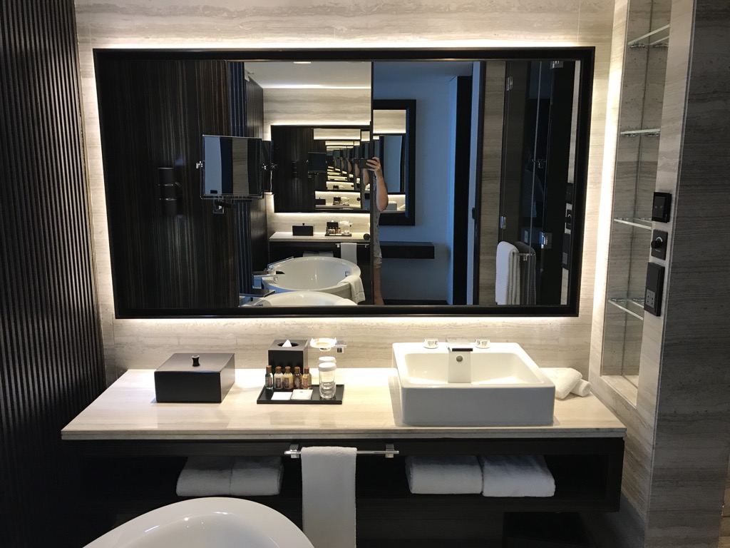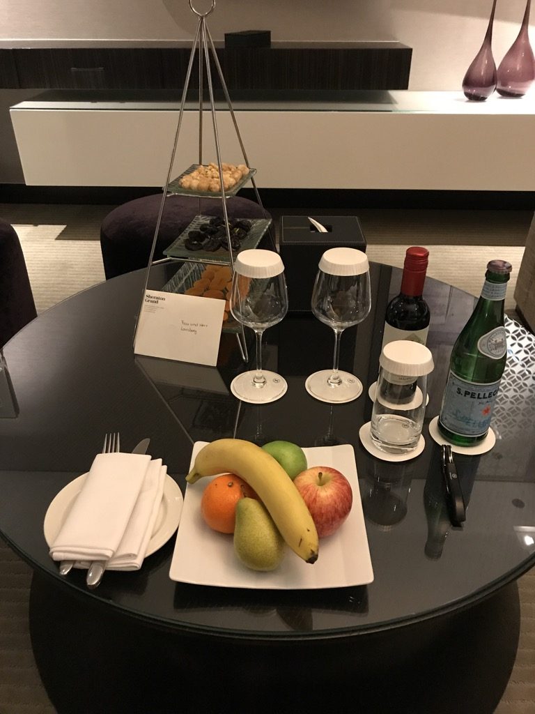 Nachdem wir aus dem Uber ausgestiegen waren, kam direkt Personal, um sich um unser Gepäck zu kümmern. Nach einer kurzen Wartezeit in der Lobby, gab es auch einen freien Platz an der Rezeption. Der Check-In verlief schnell und freundlich. Dank Christophs SPG Starwood Platinum wurde uns statt einem Standardzimmer eine Suite zugewiesen. Die Suite war noch nicht komplett fertig, weshalb wir in die Lounge zum Tea gebeten wurden. Nach einem kurzen Aufenthalt in der Lounge bekamen wir vom Loungepersonal die Zimmerkarten.