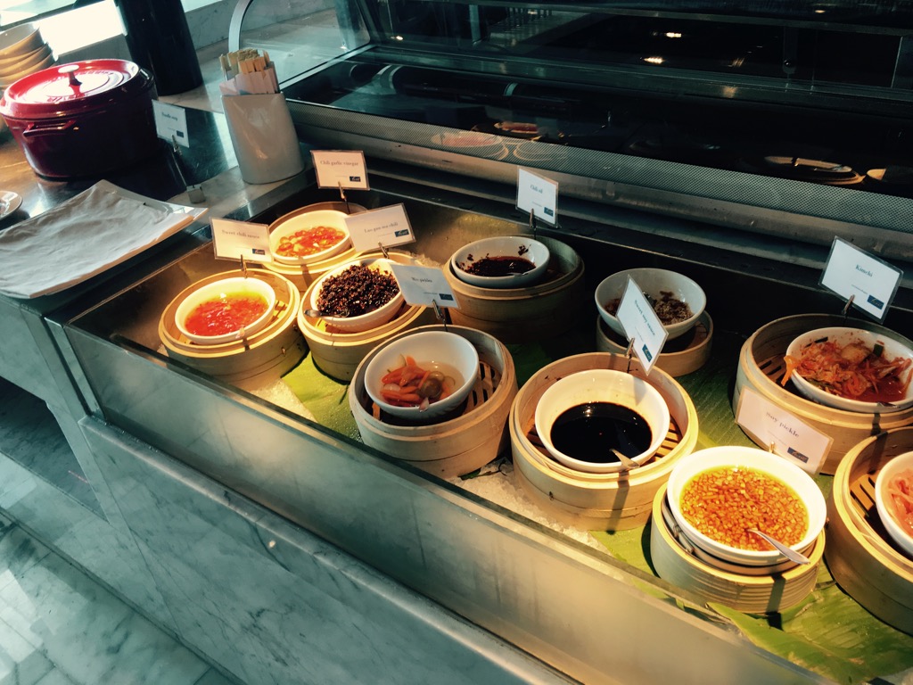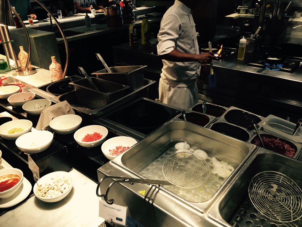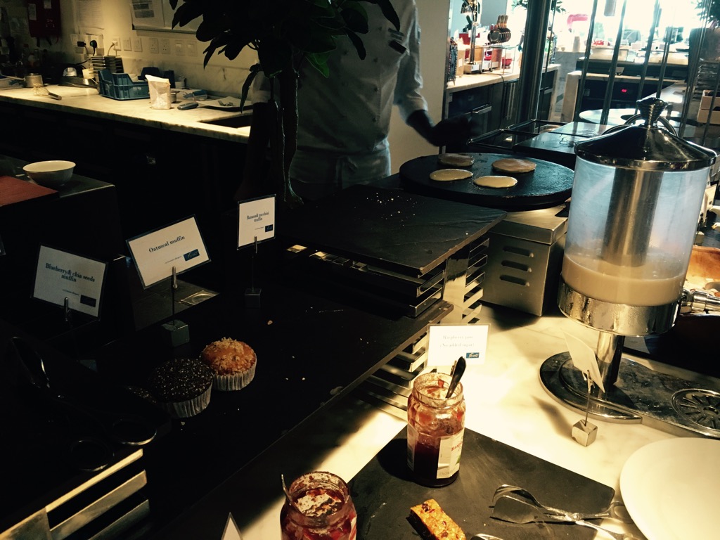 Das große Frühstücksbuffet war wirklich beeindruckend. Mir fällt absolut nichts ein, was ich vermisst habe. Es gab viele warme asiatische, arabische und westliche Speisen, eine große Auswahl an Backwaren und passenden Belägen, Obst und Gemüse, verschiedene Sorten Marmeladen und Honig, Joghurt, Molkedrinks und noch viel mehr. Natürlich wurden Eierspeisen und Pancakes frisch zubereitet. Hier mal ein paar Eindrücke: