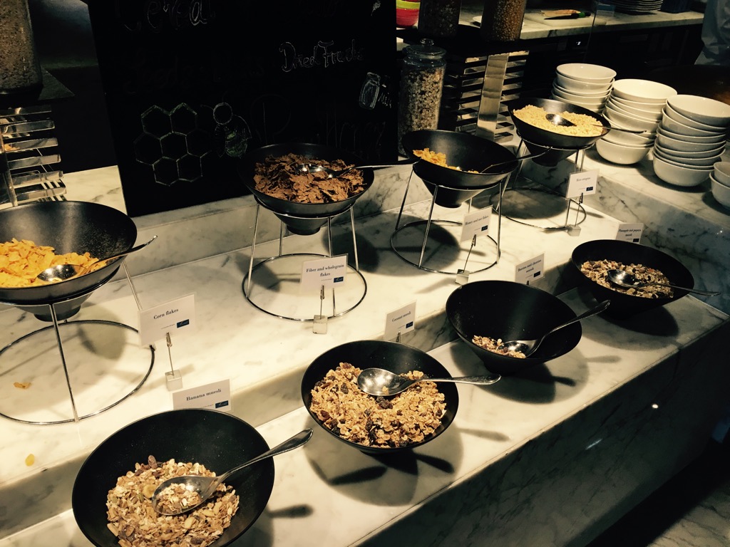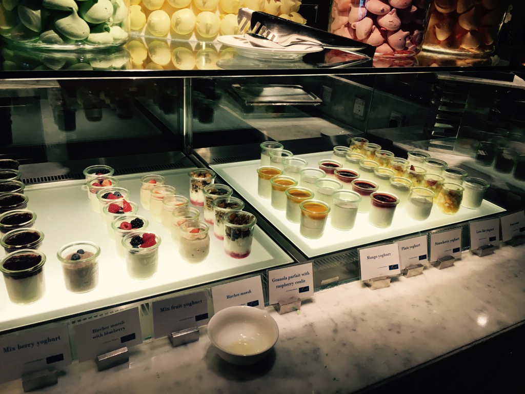 Neben einem kleinen Frühstück in der Lounge, bei dem einige warme Kleinigkeiten, Backwaren, Obst und Eierspeisen angeboten wurden, wollten wir das große Frühstücksbuffet testen.