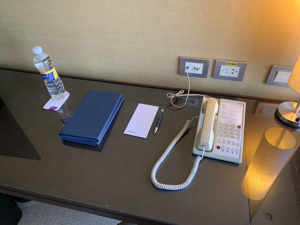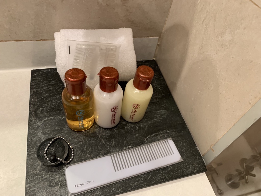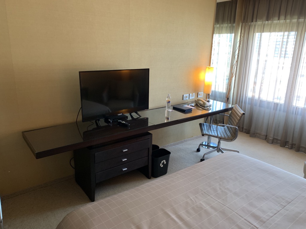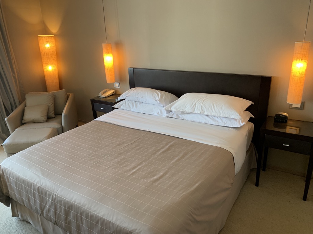 Was man auf den Bildern nicht sieht, sind die diversen Schrammen und Macken in allen Möbeln. Unglücklicherweise war auch das Bett bereits sehr durchgelegen, weshalb ich hier nicht gut geschlafen habe. Das kannte ich so von Sheraton Hotels nicht, denn selbst die alternden Hotels in den USA haben bequeme Betten.
