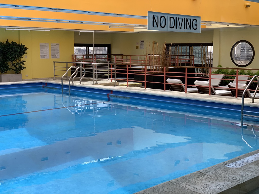 In der obersten Etage des Hotels gab es ein kombiniertes Gym samt Pool. Beides war, wie könnte es anders sein, schon recht alt und abgenutzt. Positiv war, dass im Gym immerhin alle Geräte funktioniert haben.